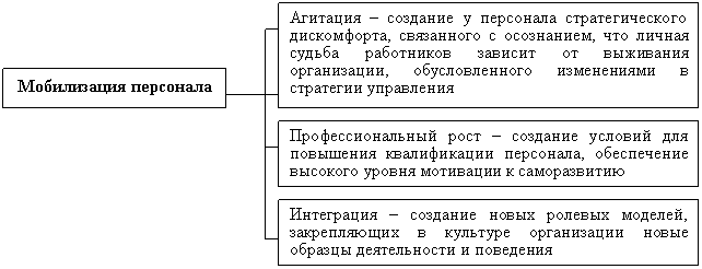 5. мобилизация персонала, т. е. переход от активного внедрения к естественному проведению изменений (Рис.11.8);
