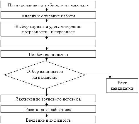 Найм на работу - это ряд действий, предпринимаемых предприятием, организацией для привлечения кандидатов, обладающих качествами необходимыми для достижения целей поставленных организацией (Рис.6.1.).