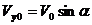 . В точке наивысшего подъема вертикальная составляющая скорости равна 0, т. е. Vy =