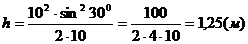 Мяч брошен со скоростью 10 м/с под углом 300 к горизонту. Найти высоту его наибольшего подъема.