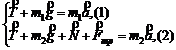 Из уравнения (4) N = m2g, тогда преобразуем уравнение (3):