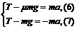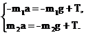 Запишем уравнения II закона Ньютона для 1 и 2 тела в векторной форме, объединив уравнения в систему:
