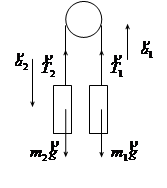 К одному концу нити, перекинутой через блок, подвешивают груз массой 500 г, к другому груз массой 300 г. Найти ускорение системы и, перемещение каждого груза через 1,2 с после начала движения. Трение не учитывать, массами блока и нити пренебречь.