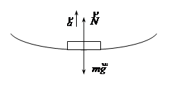 Определить скорость движения автомобиля массой 2 т по вогнутому мосту радиусом 100 м, если он давит на середину моста с силой 2,5·104 Н.