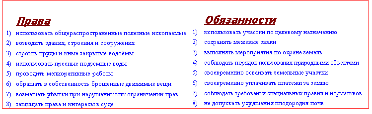 Безвозмездное срочное пользование | Пользование земельным участком |