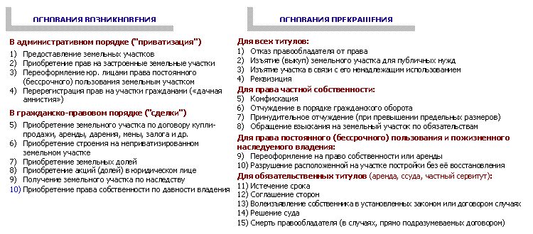 Темы № 7 и 8. Основания возникновения и прекращения прав на землю