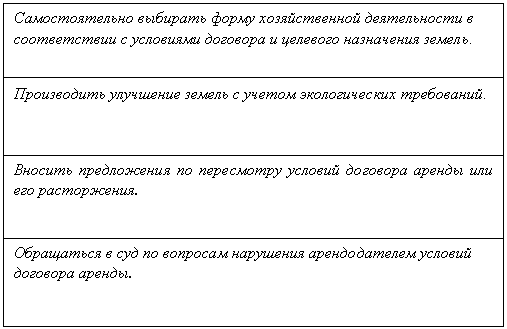 ПРАВА И ОБЯЗАННОСТИ СОБСТВЕННИКОВ, ЗЕМЛЕВЛАДЕЛЬЦЕВ, ЗЕМЛЕПОЛЬЗОВАТЕЛЕЙ, АРЕНДАТОРОВ ЗЕМЕЛЬНЫХ УЧАСТКОВ