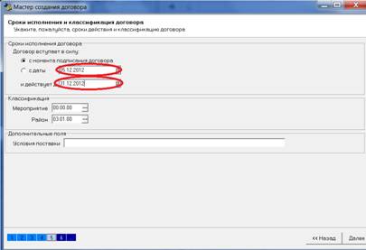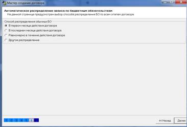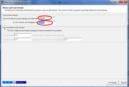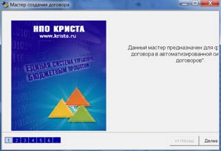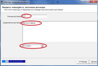 Открывается пошаговый мастер создания договора. В нижней части окна отображается, на какой странице мастера пользователь находится в данный момент.