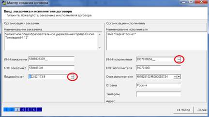 После того как вы указали обе организации, переходите к дальнейшему внесению данных предварительно перейдя на следующую страницу нажав кнопку «Далее».