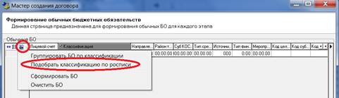 и из выпадающего меню выбрать пункт «Подобрать классификацию по росписи». Выбрать классификацию. Нажать кнопку «Продолжить». Пройти по строке и проставить сумму.