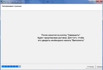 Восьмое окно подтверждает, что вы завершили внесение данных по договору. Для окончания работы с мастером нажмите кнопку