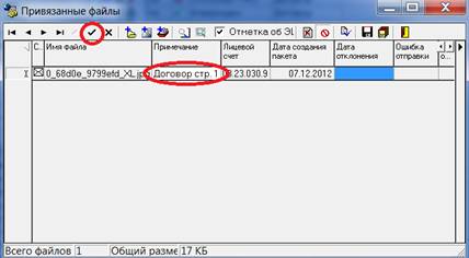 В окне появится первый привязанный файл. В поле Примечание написать наименование прикрепленного файла и нажать