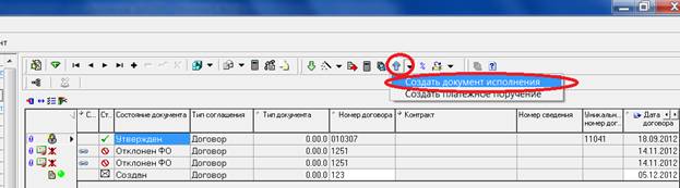 Платежное поручение создается в интерфейсе программы Учет договоров – Документы исполнения, выделив нужный ДИ (по которому будете создавать) нажимаете кнопку Создать платежное поручение по документу исполнения