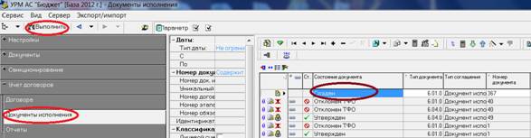 В интерфейсе программы Учет договоров – Документы исполнения нажимаете кнопку Выполнить и созданный ДИ появляется в состоянии «Создан». Также, как для договоров, выполняете пост контроль, сканируете и прикрепляете документы, передаете в ТФО и отправляете.