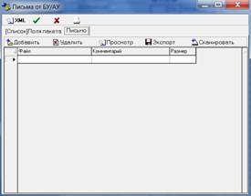 , в окне Письма БУ/АУ выбираете вкладку Письмо добавляете или сканируете необходимый файл, нажимаете кнопку