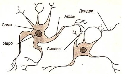 Нервная система и мозг человека состоят из нейронов, соединенных между собой нервными волокнами. Нервные волокна способны передавать электрические импульсы между нейронами. Все процессы передачи раздражений от кожи, ушей и глаз к мозгу, процессы мышления и управления действиями - все это реализовано в живом организме как передача электрических импульсов между нейронами.