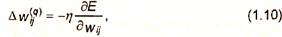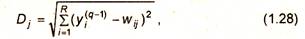 Из выражения (1.27) видно, что обучение сводится к минимизации разницы между входными сигналами нейрона, поступающими с выходов нейронов предыдущего слоя уi(q-1), и весовыми коэффициентами его синапсов.