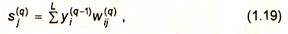 где R - размерность векторов; j - индекс нейрона в слое q; i - индекс суммирования по нейронам слоя (q -1); wij - вес синапса, соединяющего нейроны; выходы нейронов слоя (q-1) являются входными значениями для слоя q.
