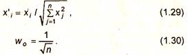 С целью сокращения длительности процесса обучения при использовании алгоритма Кохонена существует практика нормализации входных образов и начальных значений весовых коэффициентов на стадии инициализации в соответствии с выражениями: