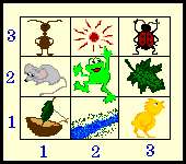 Наиболее оптимальный размер координатной плоскости при работе со сказками - 10 * 10. Плоскость, содержащая 100 картинок, может "уместить" до пятнадцати - двадцати сказок и предполагает их дифференцирование по уровню сложности (в зависимости от количества пропущенных слов и координат клеток с соответствующими им картинками).