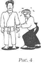 Мастер Тохеи описал Одну Точку как «бесконечный магический сосуд», в который вы можете вобрать все, что беспокоит или огорчает вас, включая гнев и негативные эмоции. Если вы попытаетесь сохранить равновесие, в то время как кто-то дергает вас за руку вниз, возможно, вы не сможете этого сделать. Если же вы представите себе, что всю силу, прилагаемую к вашей руке, вы впитываете в Одну Точку, словно это магический сосуд, и расслабляете руки, тогда вы сохраните равновесие (рис. 3 и 4).