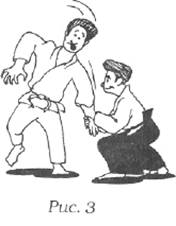 Если человек стоит, а мускулы его тела напряжены, то, толкнув его, даже мягко, вы легко сможете заставить его изменить позу. И наоборот, если он сосредоточит внимание на точке под животом, его мускулы не напрягутся, он не будет сопротивляться толкающему давлению и останется устойчивым, как камень (рис. 1 и 2).