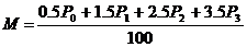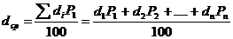 0,5; 1,5; 2,5; 3,5 - средний размер частиц каждого остатка между двумя смежными ситами, мм.