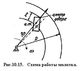 Анализ относительного движения молотка показал, что реакция от ударных импульсов не будет передаваться от молотка на палец (следовательно и на подшипники вала барабана) если центр удара совпадает с центром качаний.