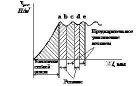 установил, что в процессе резания лезвием решающее значение имеет скользящее (боковое) движение ножа, так как оно понижает предел нормального давления на материал. Облегчение проникновения ножа в материал при наличии бокового движения объясняется перепиливающим действием микронеровностей лезвия.
