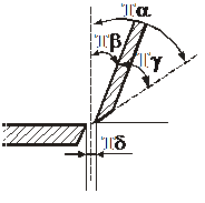 2. Направление приложенной силы не совпадает с направлением скорости точек лезвия ножа, т. е. когда направление полной скорости точек лезвия ножа отклонено на какой-то угол