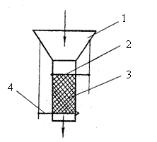 Рис.12.2. Схема объемного порционного дозатора 1 - бункер; 2 - заслонка; 3 - полость дозатора; 4 - выпускная заслонка. |