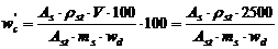 Вычисляют содержание кофеина, wc, выраженное в процентах по массе, численно эквивалентное граммам на 100 г кофе по формуле (2):