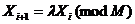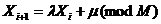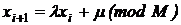 Задает последовательность неотрицательных целых чисел {Xi} не превосходящих М по формуле:
