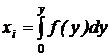 является равномерным на интервале (0,1). Чтобы получить число, принадлежащее последовательности случайных чисел {yi}, имеющих функцию плотности f(y), необходимо разрешить относительно yi уравнение