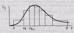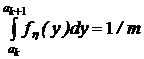 Пусть требуется получить последовательность случайных чисел {yj} с функцией плотности fh(y) , значения которой лежат в интервале (a, b). Разобъем интервал (a, b) на m интервалов (рис. 8), и будем считать fh(y) на каждом интервале постоянной. Разбивать необходимо так, чтобы вероятность попадания случайной величины в любой интервал (ak, ak+1) была постоянной, т. е.: