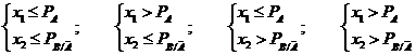 В зависимости от того, какая из этих четырех систем неравенств выполняется, делается вывод о том, какой из четырех возможных исходов имеет место: