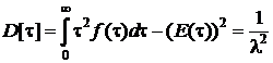 Дисперсия интервала времени между последовательными моментами поступления заявок