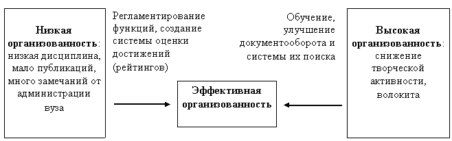 Рис.19. Пример обеспечения баланса между высокой и низкой организованностью кафедры