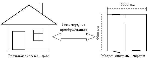 2) Гомоморфизм представляет собой такое соответствие между двумя системами, которое не является взаимно однозначным. При гомоморфизме аналогия между двумя системами меньше, чем при изоморфизме, и одна из систем является как бы упрощенной копией другой. Например, географическая карта является упрощенной копией по отношению к местности, а лабораторная установка является упрощённой копией производственного оборудования.