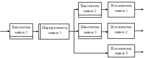 Рис.39. Пример простой имитационной модели (схемы системы массового обслуживания)