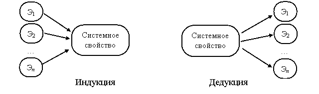 - Индукцию («от простого к сложному»). Сначала изучаются свойства отдельных частей системы – элементов, а уже на основе знания об их свойствах делается вывод о свойствах системы.