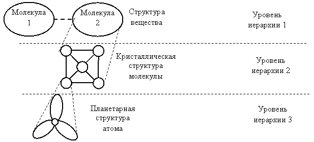Рис.67. Уровни иерархии на примере физического строения вещества