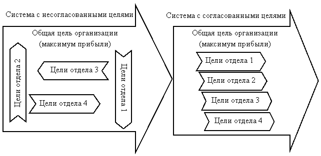 Рис.85. Пример систем с согласованными и несогласованными целями