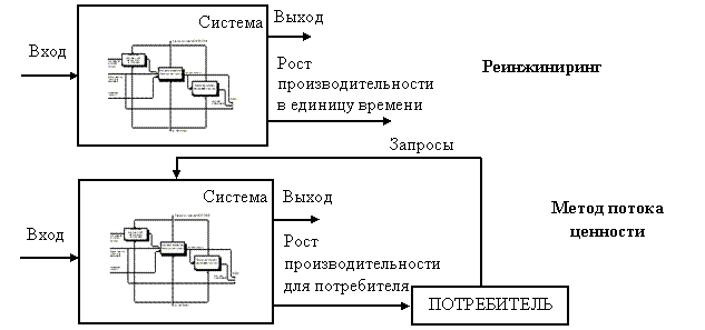 Рис.89. Сравнение реинжиниринга и метода потока ценности