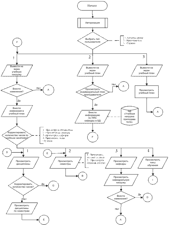 Рис.94. Пример фрагмента алгоритма функционирования информационной системы планирования учебного процесса