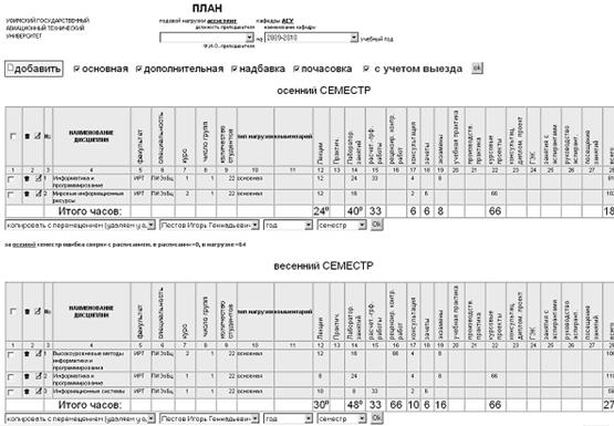 Рис.91. Пример мнемосхемы системы планирования учебного процесса
