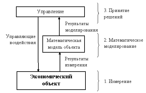 В исследовании и моделировании экономических систем обычно выделяются три уровня использования количественных методов [14]: измерение, математическое моделирование и принятие решений (рис.98).