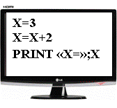 Почему этот оператор называют оператором организации диалога с компьютером? Потому что оператор INPUT прерывает выполнение программы, выводит на экран «?» и переходит в режим ожидания. Пользователь должен в ответ для каждой переменной ввести с клавиатуры ее значение, разделив их запятыми.