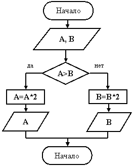 Для того, чтобы увеличить в два раза большее из двух чисел, прежде всего, необходимо сравнить эти числа. Если больше число A, то мы удвоим его, иначе, мы удвоим число В.