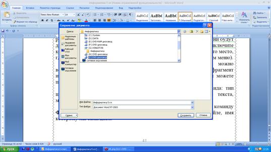 Набранный текст можно сохранить, используя команду Файл/Сохранить. Текст сохраняется во внешней памяти, в файле, имя которому мы сами даем (Рис.9).